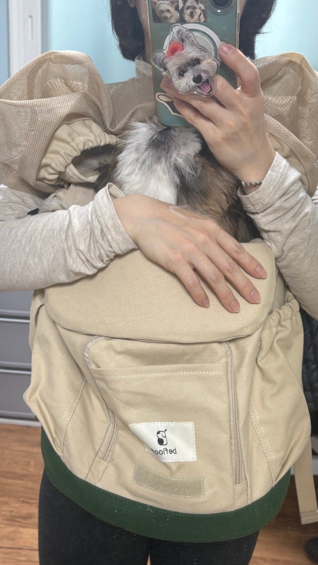 슬링백이 있지만 앞가방도 필요해서 합리적인 가격이면서도 기능에 충실한 가방을 찾다가 구매했습니다 원단은 두꺼운 캔버스천? 이라고 해야할까요? 거친느낌이라 별 하나 뺐습니다 냄새가 좀 나서 베란다에 걸어두었네요 허리벨트가 있어서 좋고 메쉬망도 있어 좋은데 3킬로 강아지에겐 깊어서 이너쿠션을 넣어 쓸생각입니다 메쉬망 고무줄이 너무 짱짱해서 좀 늘여서 쓰려구요 바닥판 쿠션 단단해서 좋고 슬링백보다 어깨 덜아플거같아 좋네요